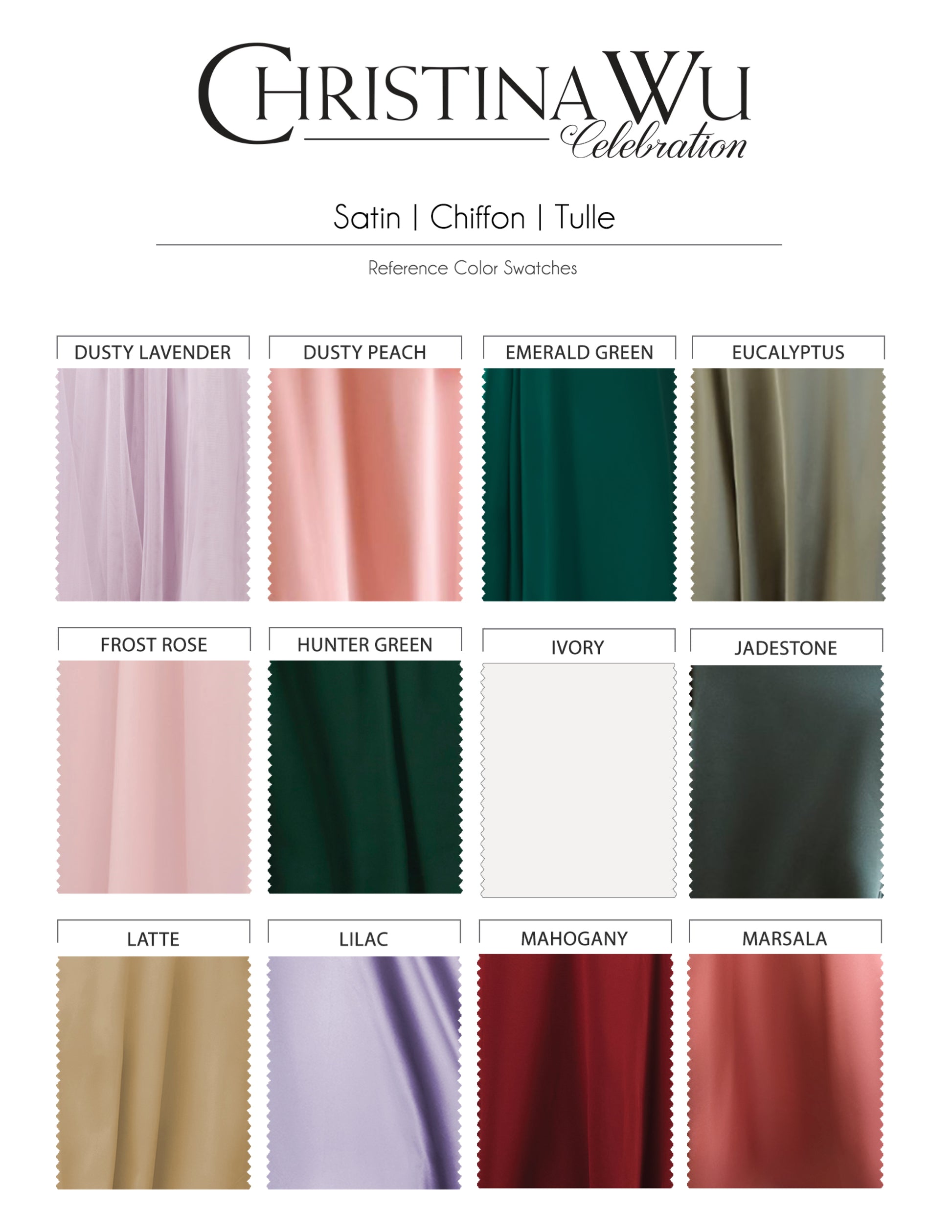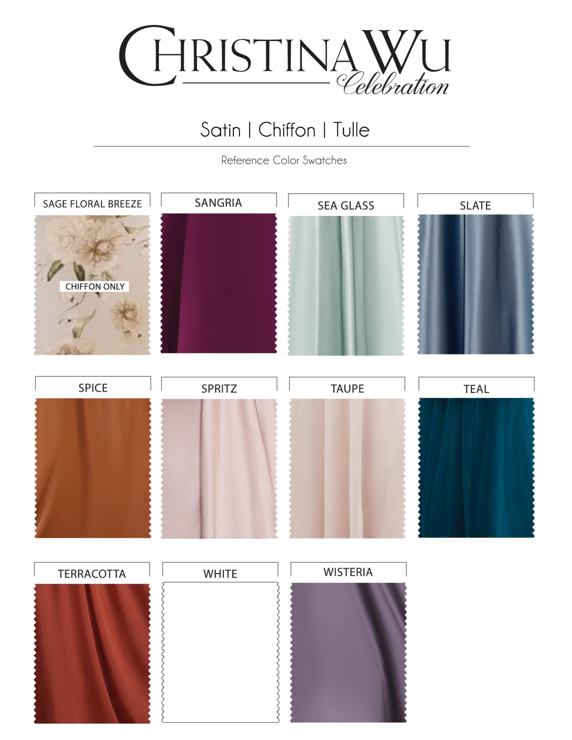 Available in Aqua, Aubergine, Autumn, Ballet, Black, Butter Lux, Chambray, Cherry Blossom, Chocolate, Claret, Coral, Dusty Lavender, Dusty Peach, Emerald Green, Eucalyptus, Frost Rose, Hunter Green, Ivory, Jadestone, Latte, Lilac, Mahogany, Marsala, Mauve, Meadow, Midnight, Misty Blue, Navy, Peony, Red, Romance, Rose, Royal, Royal Purple, Sage, Sangria, Sea Glass, Slate, Spice, Spritz, Taupe, Teal, Terracotta, White, Wisteria