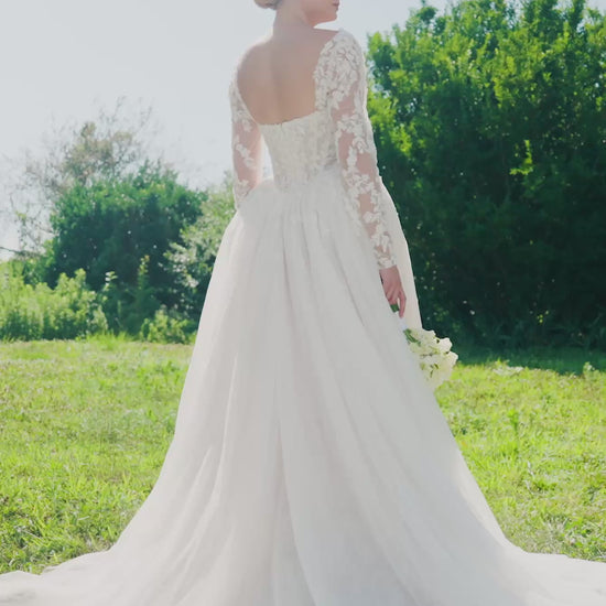 Detachable illusion long sleeves with matching appliqués give you two looks in one. Sleeves included with the dress and also sold separately as Style 11582.