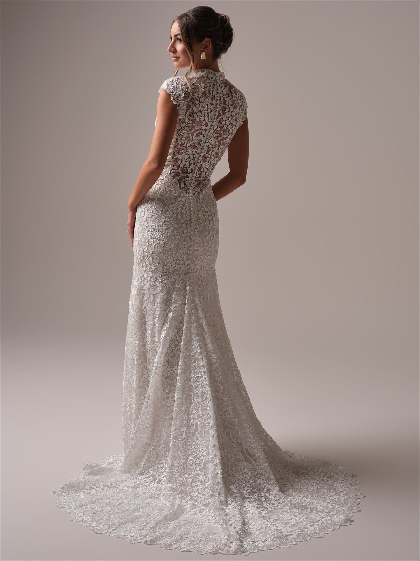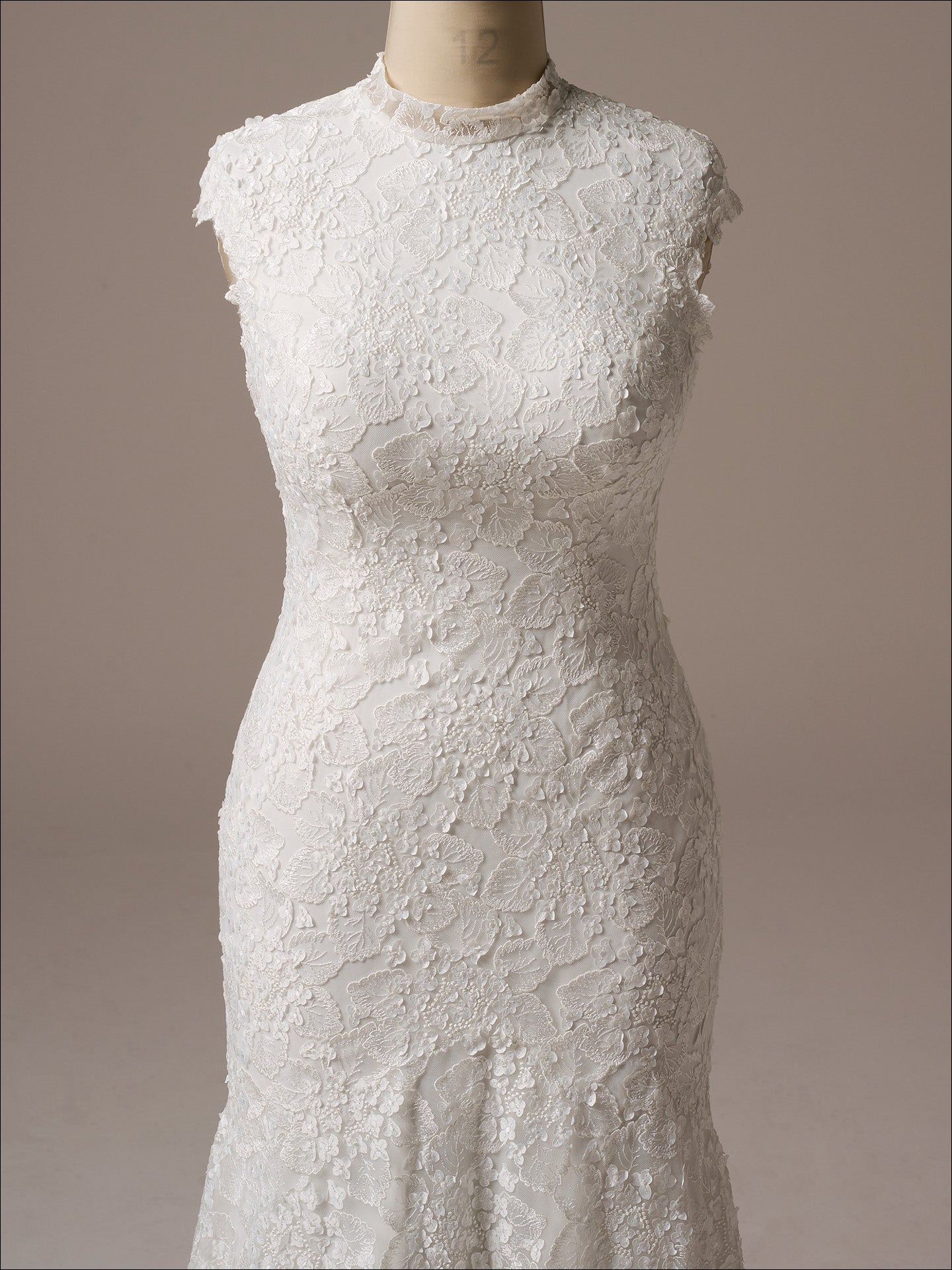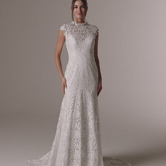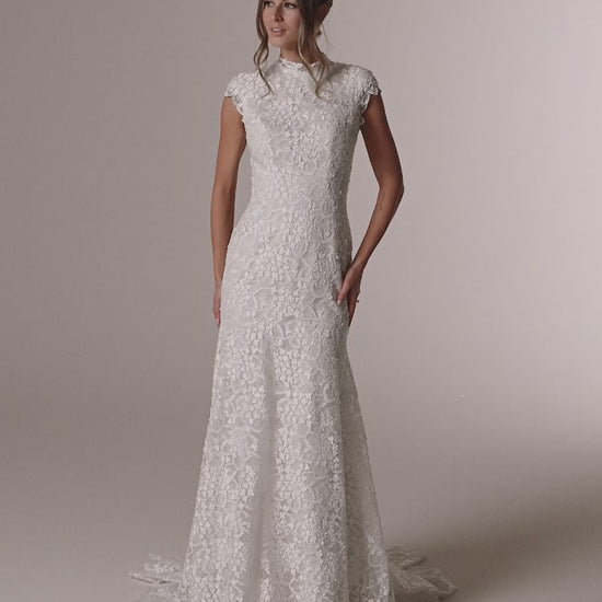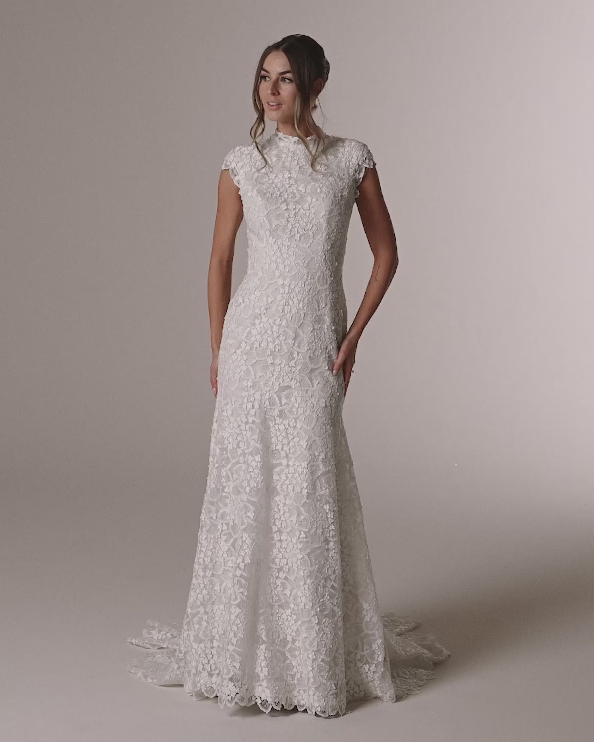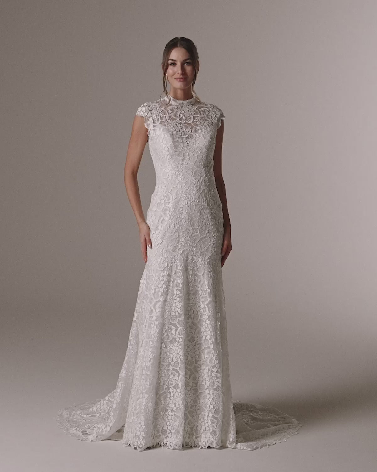 Count all the ways we love this lace sheath cap-sleeve bridal dress for a boho-luxe celebration - and we could be here all night!