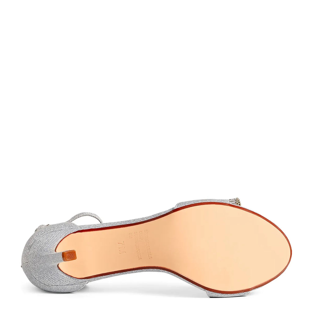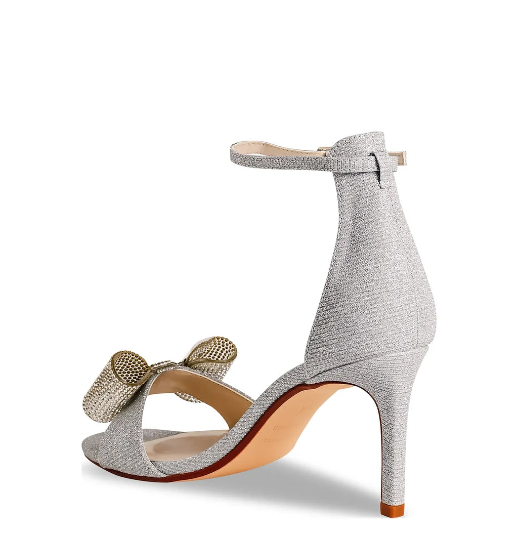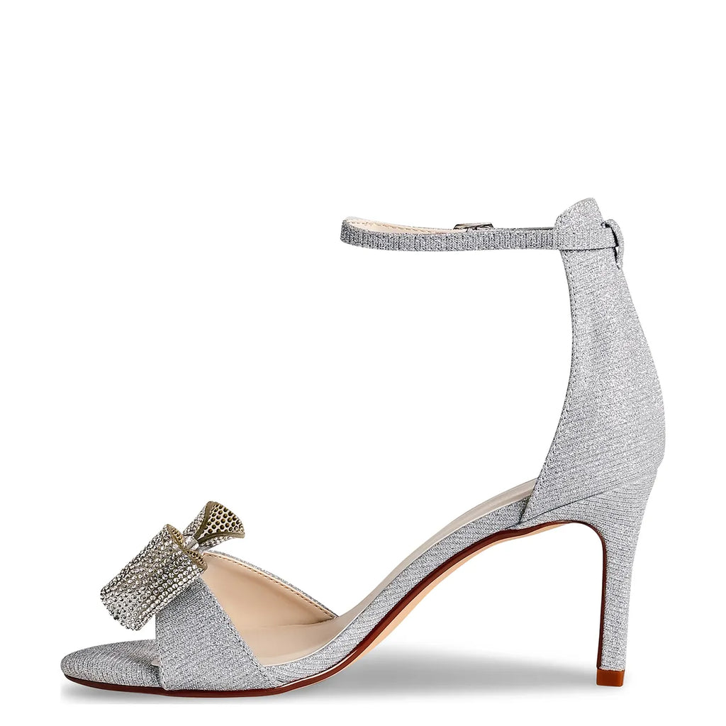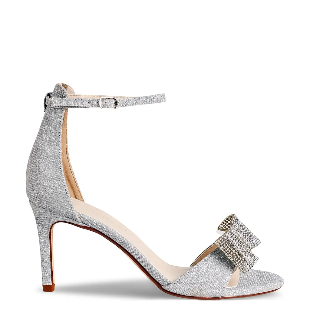 Shine from every angle in the elegant glittery Esme heel by Benjamin Walk. Designed with a sleek ankle strap and a slender stiletto silhouette, this glamorous style is elevated by a statement crystal bow that catches the light with every step. Perfect for weddings, galas, or any night that calls for sparkle, these heels add instant sophistication to any outfit while keeping your look timeless and chic.