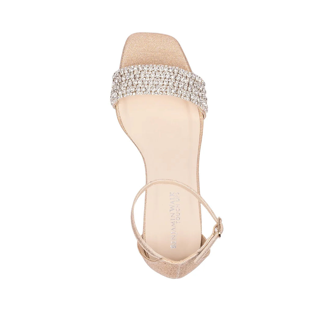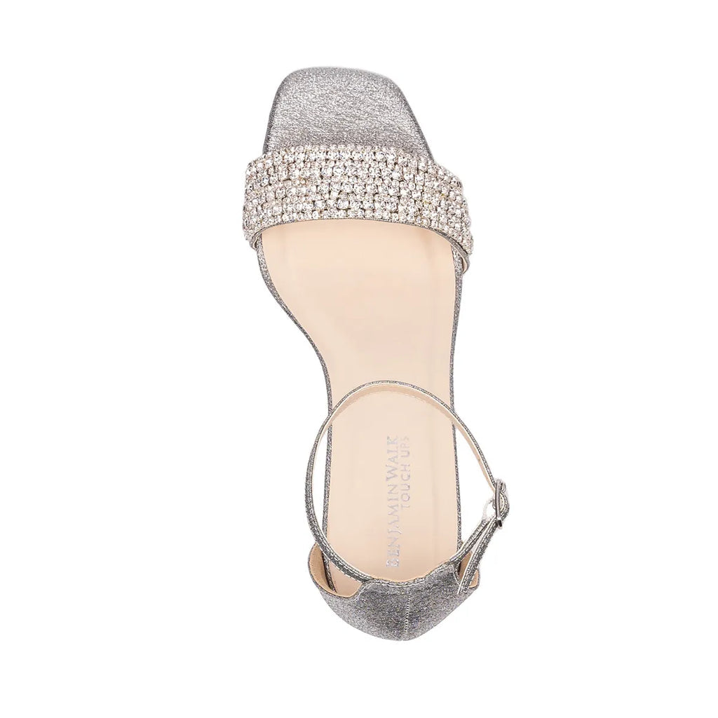 Jade by Touch Ups is a stable heeled sandal featuring a jeweled rhinestone vamp and an adjustable ankle strap. This elegant sandal is perfect for anyone looking to be comfortable and stylish.