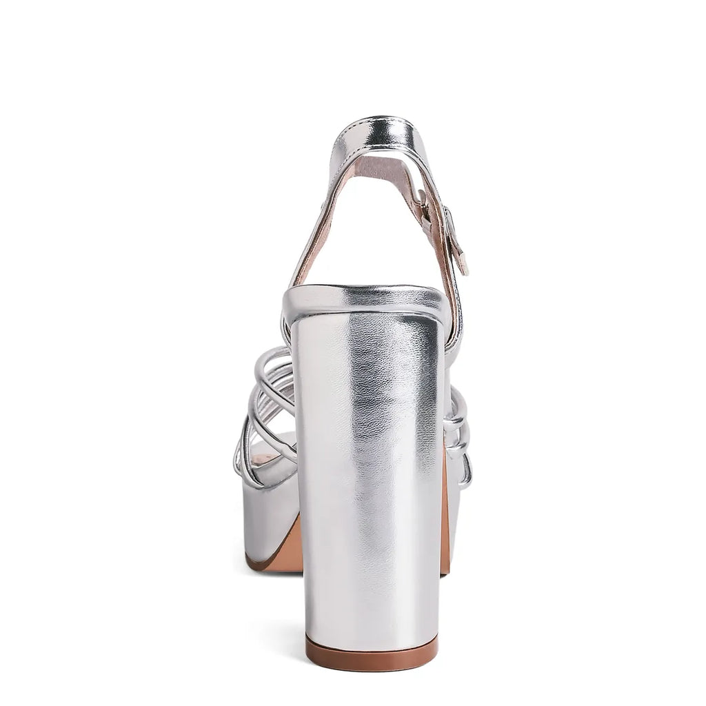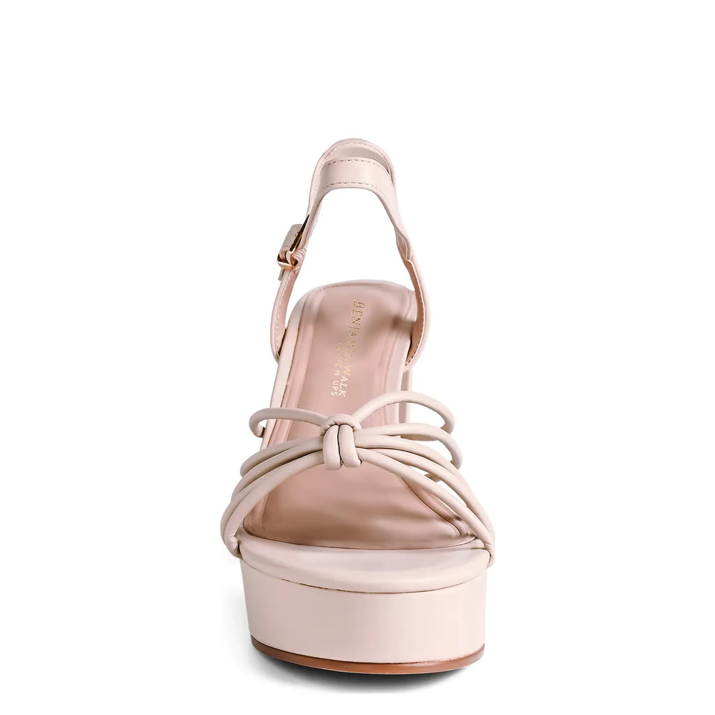 Make an entrance in Tiara, by Benjamin Walk. These high fashion platform heels redefine modern glam. With a sleek metallic finish, strappy knot-front design, and towering block heel, this statement shoe delivers maximum impact with confident, retro-inspired flair. The supportive ankle strap and cushioned platform keep you balanced and bold from cocktails to the dance floor. Dazzling, daring, and impossible to ignore—this is the ultimate power heel for the modern muse.